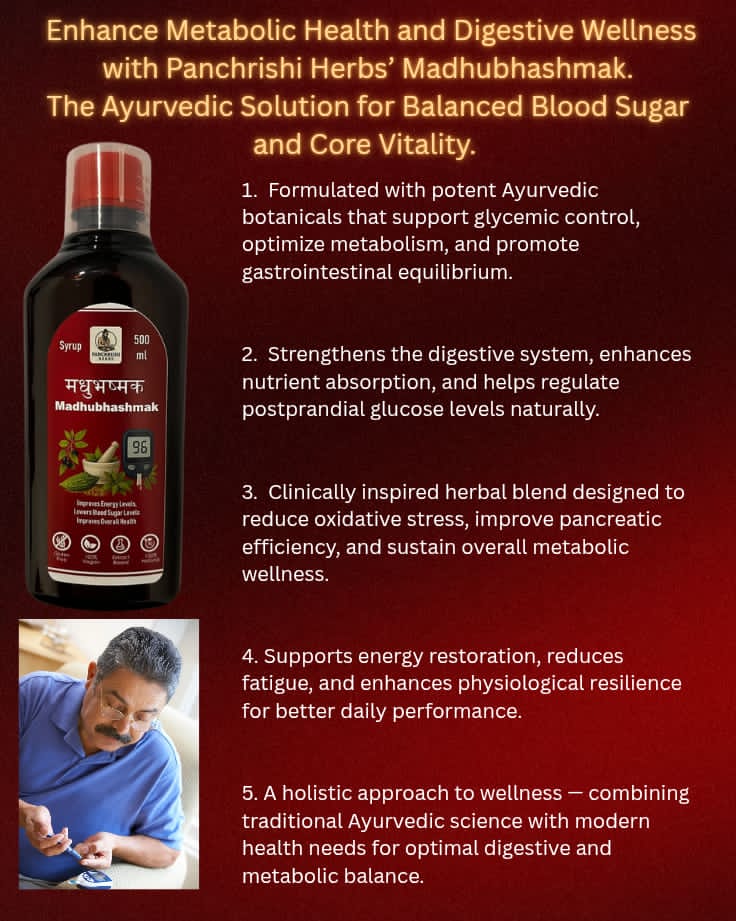 Madhubhashmakh is a 100% natural ayurvedic remedy formulated with herbs known for their blood sugar balancing properties. It aids in regulating glucose levels, enhancing insulin sensitivity, and supporting pancreatic health. Suitable for long-term use, this natural formulation helps diabetic patients manage sugar levels while promoting overall vitality and immunity. Free from synthetic chemicals, Madhubhashmakh is a safe and holistic approach to maintaining a healthy lifestyle.