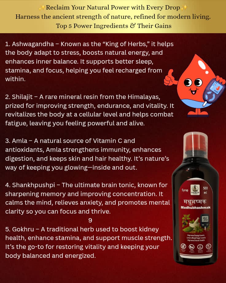 Madhubhashmakh is a 100% natural ayurvedic remedy formulated with herbs known for their blood sugar balancing properties. It aids in regulating glucose levels, enhancing insulin sensitivity, and supporting pancreatic health. Suitable for long-term use, this natural formulation helps diabetic patient..